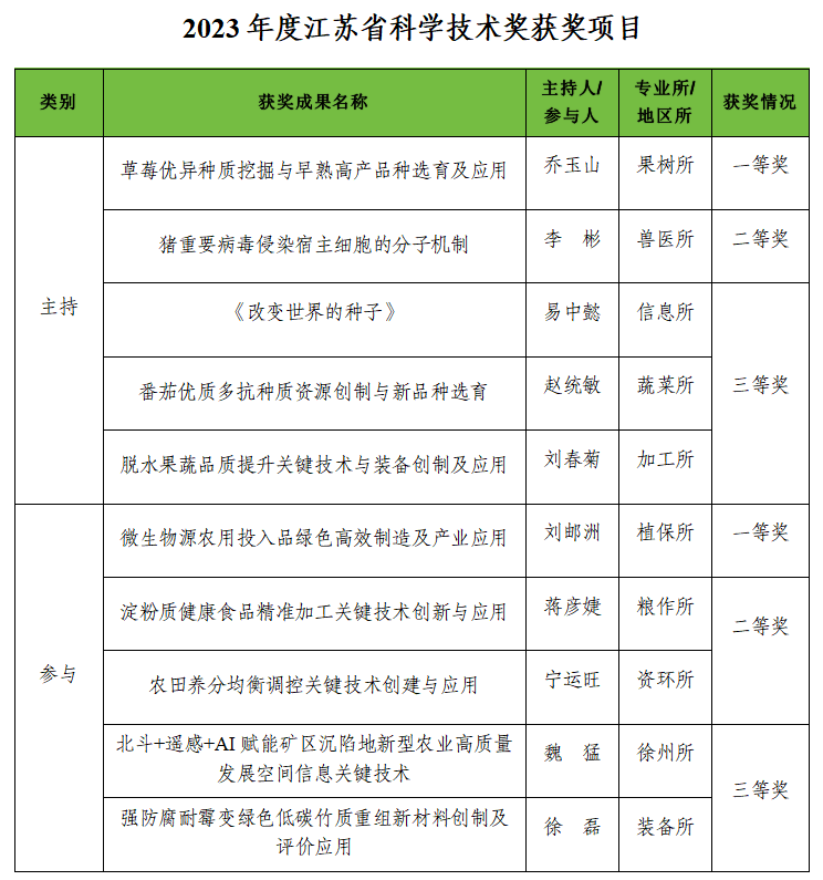 江苏省园艺学会评价的科技成果荣获2023年度江苏...